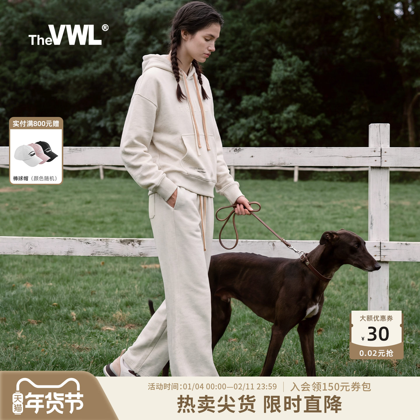 【田嘉瑞同款】VWL弯刀运动套装宽松卫裤卫衣男女抽绳加绒香蕉裤