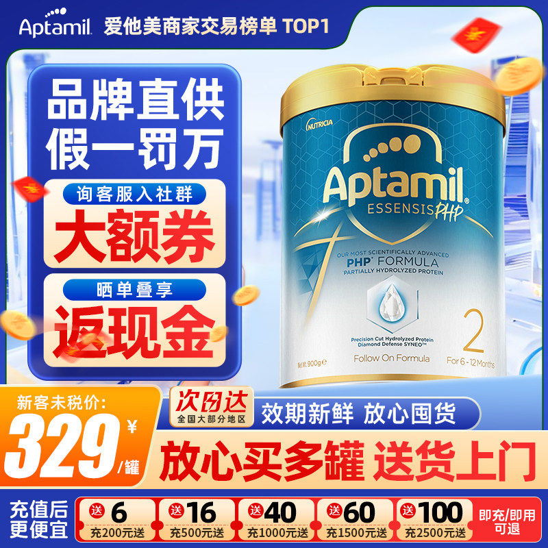 【官方正品】爱他美奇迹白罐2段适度水解低敏较大婴儿益生菌奶粉