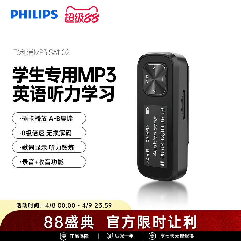 飞利浦随身听SA1102 mp3学生版小型便携式音乐播放器听歌学生英语