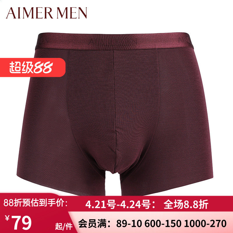 aimer men爱慕先生 男士酒红色莫代尔无痕中腰平角薄内裤NS23A612