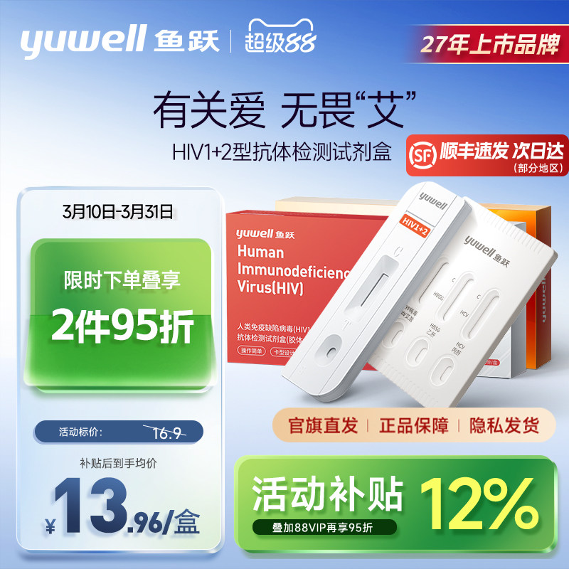 鱼跃艾滋病测试hiv检测纸四联试剂盒梅毒自检四合一非hlv四代五代