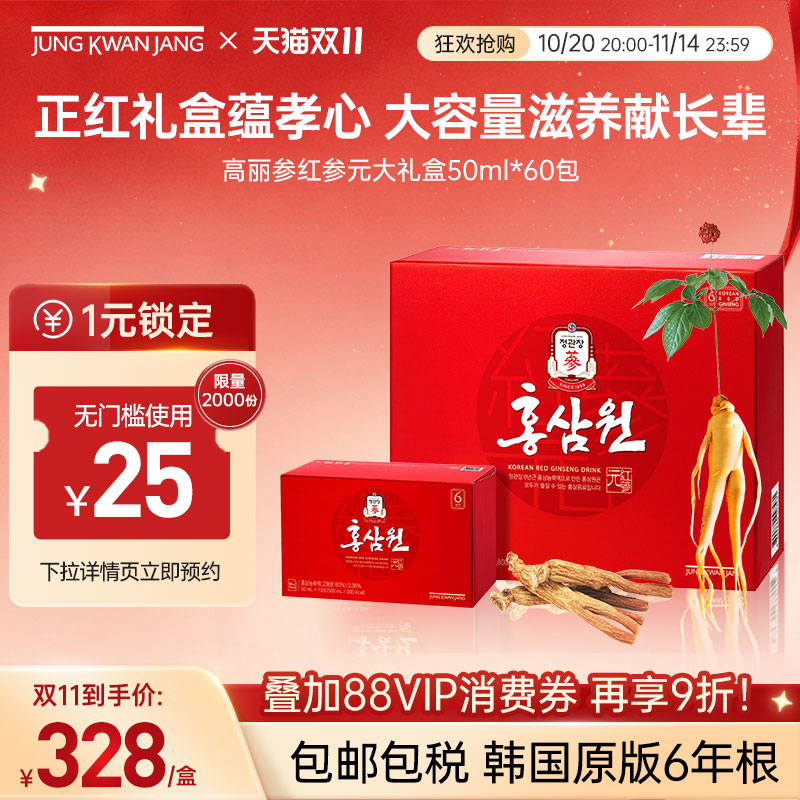 正官庄韩国6年根高丽参红参元人参滋补气血官方正品礼盒送礼临期