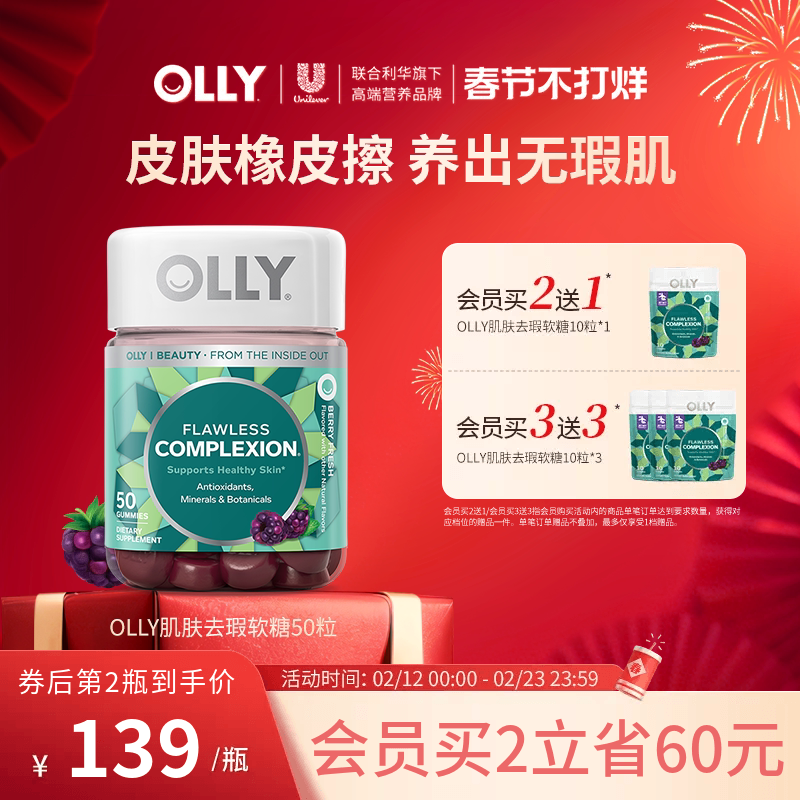 OLLY肌肤去瑕清透痘痘印闭口内调焕亮锌硒美肌维生素AE进口保健品