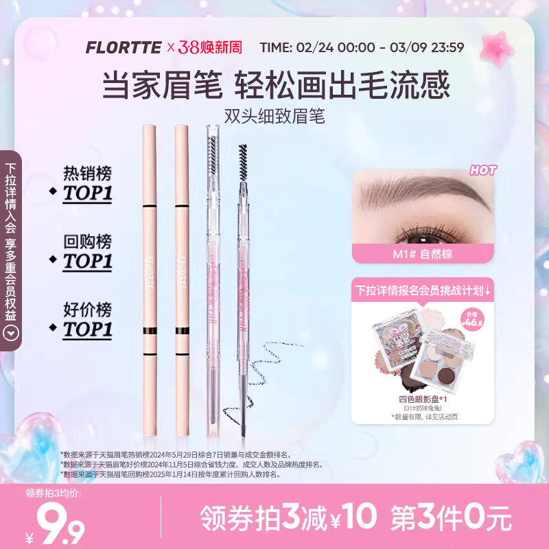FLORTTE/花洛莉亚眉笔自然防水新手精细眉笔旗舰店官方正品学生党