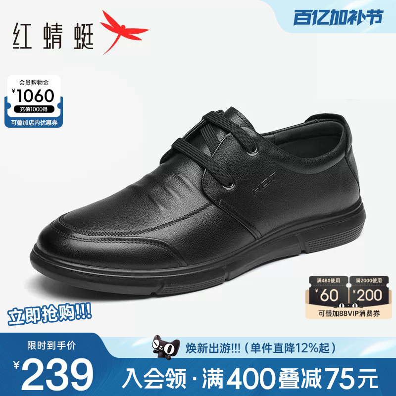 • 泡美丽»»红蜻蜓男鞋春季真皮休闲皮鞋男士软底一脚蹬鞋子休闲鞋中年爸爸鞋