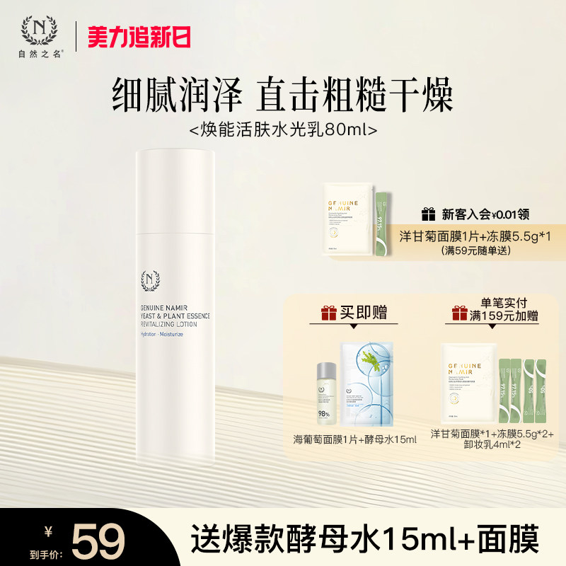 自然之名酵母植萃焕能水光乳水润保湿精华酵母水乳液男女官方正品