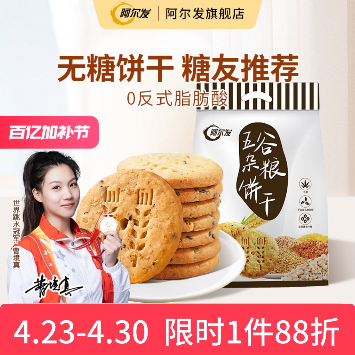 阿尔发五谷杂粮燕麦粗粮食品饼干木糖醇全麦糖尿人无糖零食礼盒